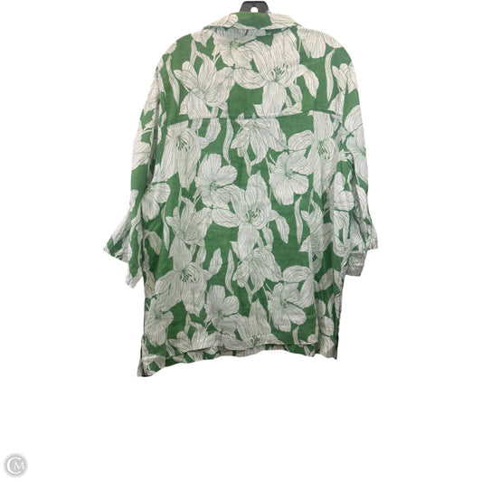 Top Long Sleeve By Tahari In Green & White, Size: 1x